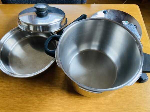 揚げ物をする時に使用しているステンレスフライパンの二つを磨いた