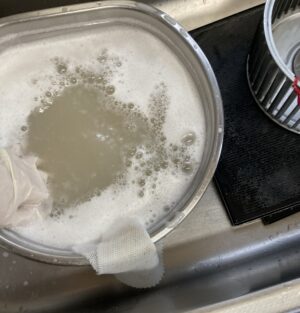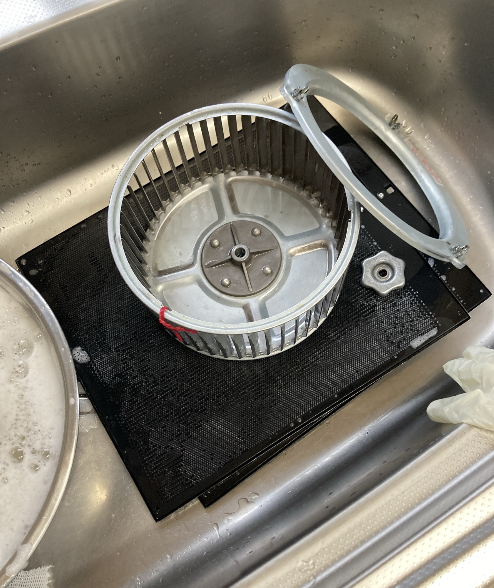 次いで換気扇内部を洗剤付きの布巾で拭き、乾拭きして終了