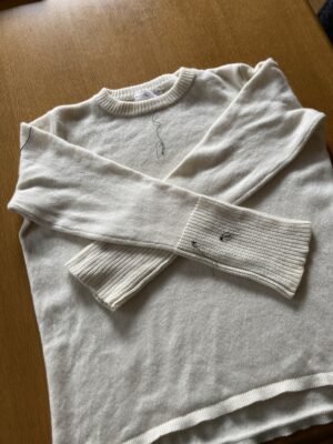 昨日、シミのついていた所に予め糸で印をつけてから、