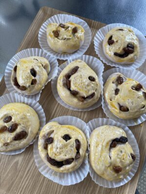 食べている間に胡桃とレーズンパンも焼けた(砂糖は使用せず)
