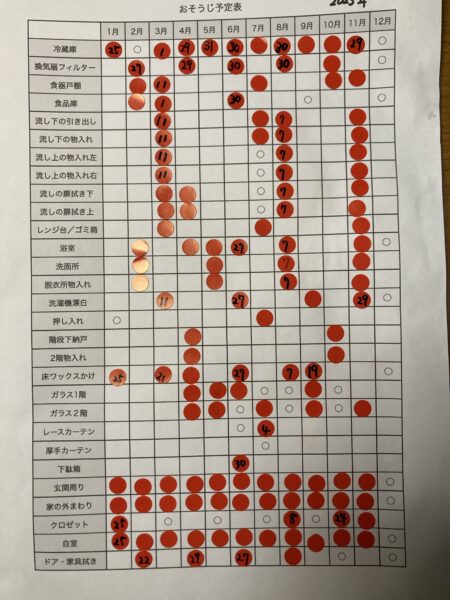 今月の「おそうじ予定表」でまだ終えていない掃除に着手